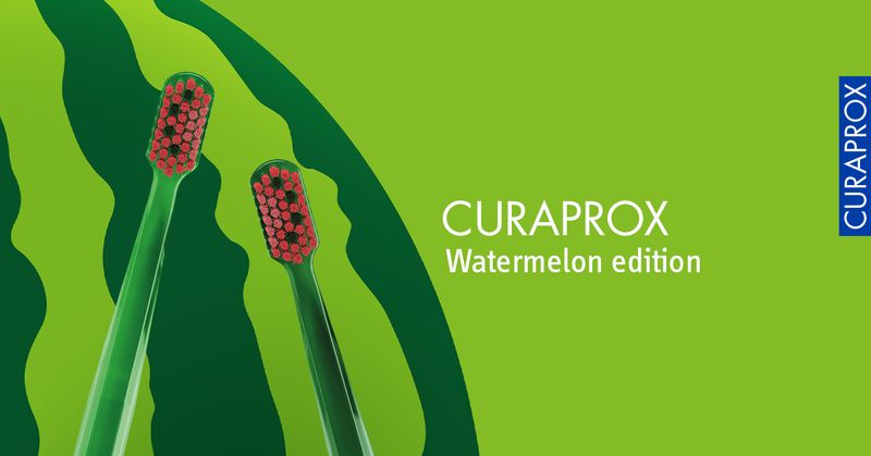 Soczysty arbuz to jeden z owoców, który zdecydowanie kojarzy się ze słonecznym latem. Przywołuje ciepłe i pozytywne wspomnienia oraz poczucie wakacyjnej beztroski. Nie bez powodu stał się inspiracją do opracowania nowej edycji limitowanej kultowych szczoteczek Curaprox CS 5460. Wyróżnia je urocze, barwne włosie imitujące arbuza oraz piękne, przeźroczyste rączki w odcieniu zieleni. Ten prosty, a zarazem atrakcyjny projekt nie tylko zaskakuje, ale również pobudza zmysły!