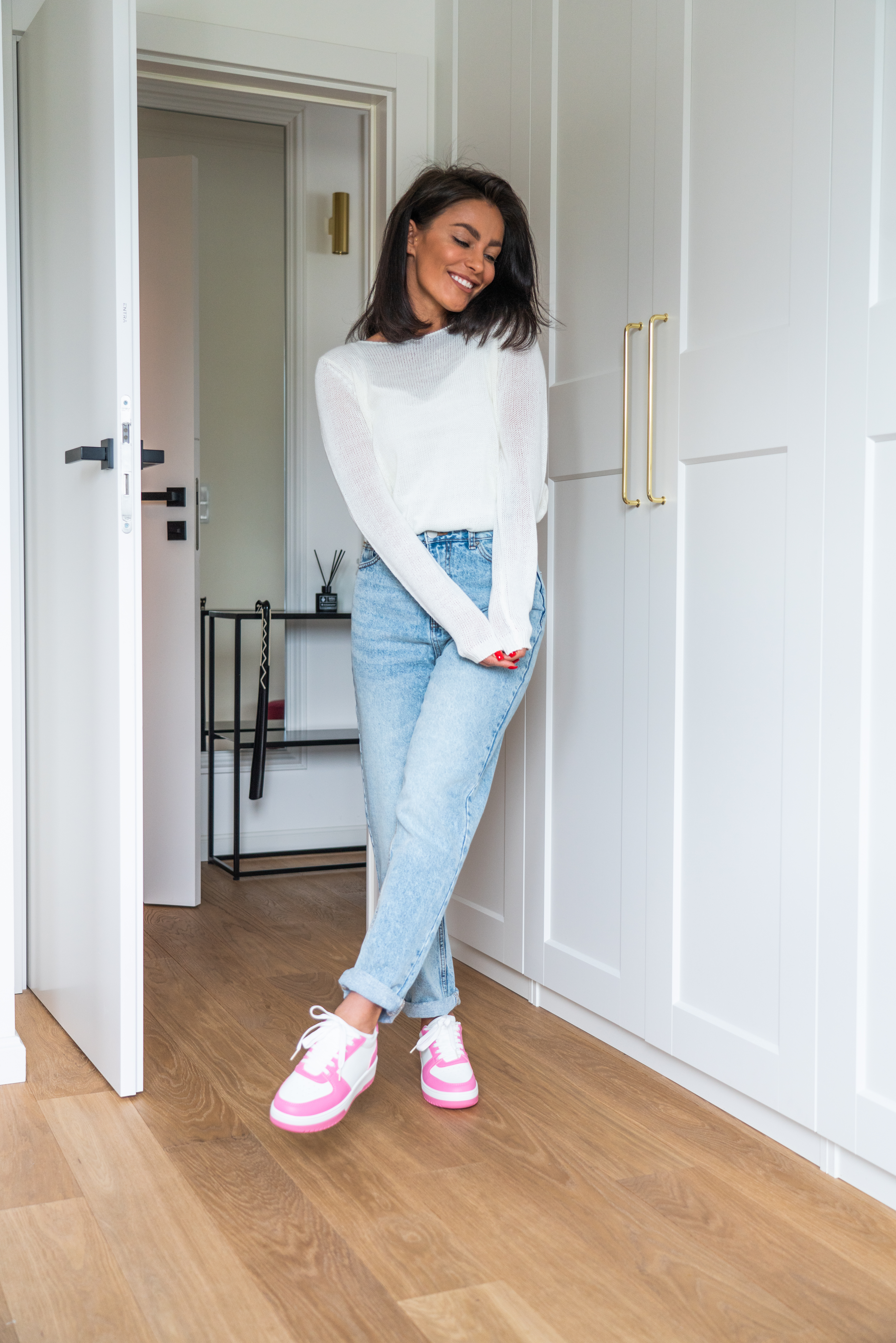 - Pierwszy to biały total look w codziennych stylizacjach, np. biała bluza, białe kolarki lub szorty albo tenisowa spódniczka oraz białe sportowe buty, koniecznie ze skarpetkami nad kostkę. Tak ubrane możemy wyskoczyć na spacer z psem, do sklepu czy swobodnie spędzić czas ze znajomymi w domu.