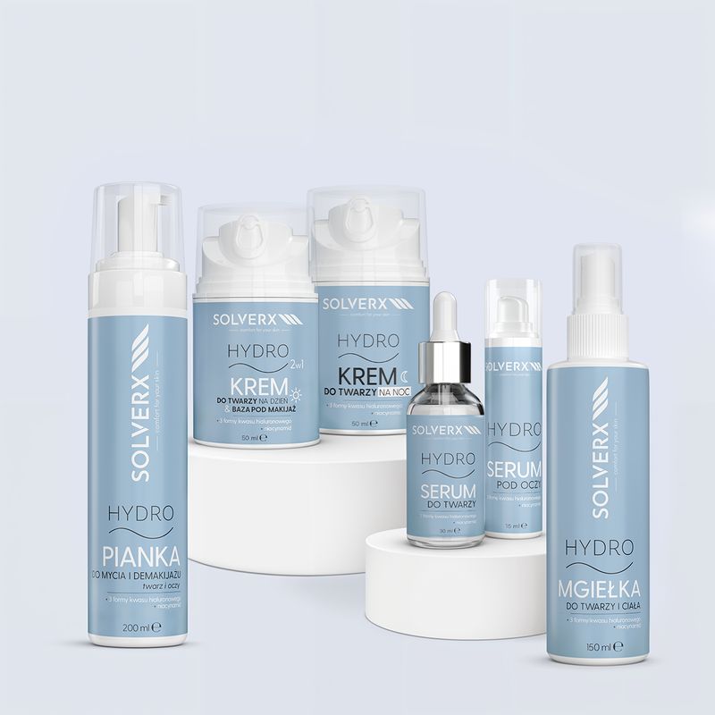 – Skutecznym sposobem na osiągnięcie efektu długotrwałego nawilżenia jest włączenie pełnej procedury pielęgnacyjnej opartej na skrupulatnie dobranych składnikach aktywnych. Warto zacząć od demakijażu i już na tym etapie wybrać produkty, które same w sobie będą zapobiegały utracie wody, np. SOLVERX® HYDRO Piankę do mycia twarzy i demakijażu. W ten sposób multiplikujemy efektywność naszych działań. Następnie należy zastosować serum i krem – odpowiedni do pory dnia – mówi Agnieszka Kowalska, Medical Advisor, ekspert marki SOLVERX®. Absolutnym hitem ostatniego sezonu są wygodne mgiełki o działaniu odświeżającym i nawilżającym, które idealnie sprawdzają się w przypadku bardzo wysokich temperatur, podbijając działanie pozostałych elementów codziennej rutyny – dodaje.