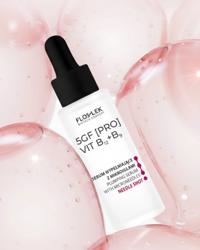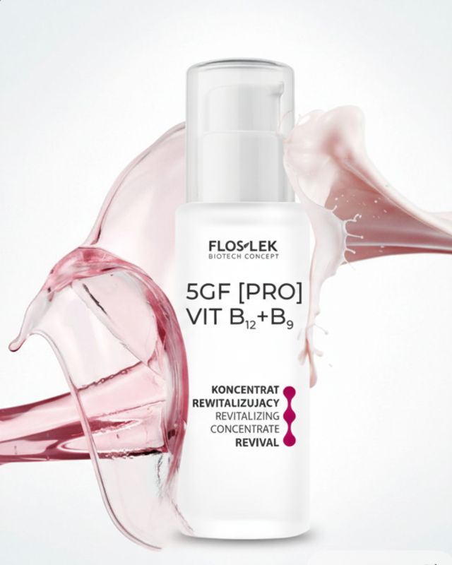 Nowa linia 5GF [PRO] VIT B12 i B9 od FLOSLEK Biotech Concept to kompleksowa biorewitalizacja inspirowana medycyną regeneracyjną, opracowana z myślą o cerze odwodnionej i pozbawionej blasku z pierwszymi oznakami starzenia. Produkty wspierają naturalną odnowę, poprawiają elastyczność, witalność i kondycję skóry oraz redukują widoczne oznaki zmęczenia. Seria obejmuje koncentrat rewitalizujący, krem odmładzający, krem naprawczy oraz serum wypełniające z mikroigłami.