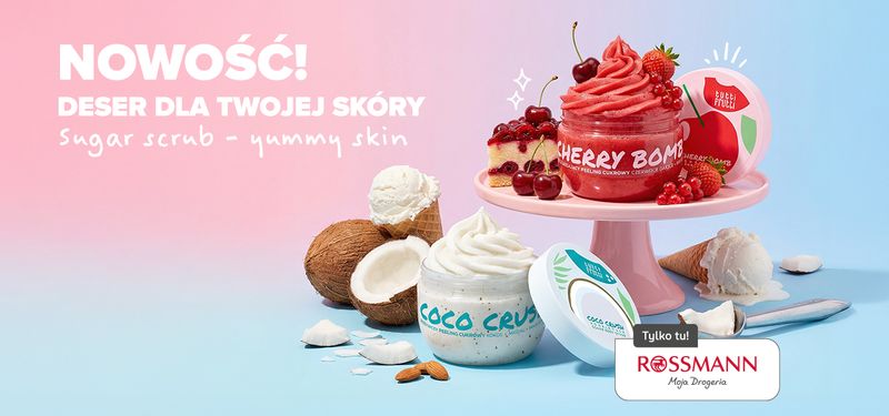 CHERRY BOMB Wygładzający peeling cukrowy wiśnia + czerwone owoce oraz COCO CRUSH Odżywczy peeling cukrowy kokos + migdał + makadamia są idealne do regularnego stosowania: zapewniają delikatne, ale skuteczne złuszczenie naskórka, jednocześnie dbając o nawilżenie, bo zawarta w nich gliceryna jest silnym humektantem. Nie przesuszają skóry, co gwarantuje brak uczucia ściągnięcia po zmyciu, za sprawą lekkiej formuły nie pozostawiają tłustego filmu i łatwo się spłukują – są więc doskonałe także wtedy, gdy masz czas tylko na szybki prysznic. Ponadto wyróżnia je wysoka tolerancja, dzięki czemu są odpowiednie także dla skóry wrażliwej. To… który wybierasz?