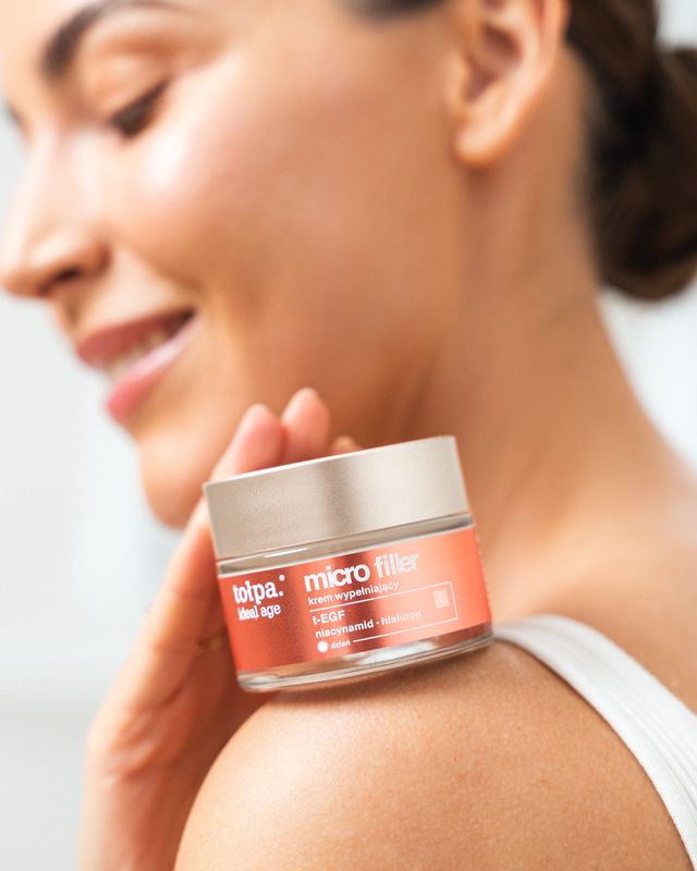 tołpa.® ideal age dzięki kompleksowi t-EGF działa w rytmie odnowy skóry zapewniając długotrwałe efekty. Wykorzystuje również moc unikalnej kombinacji składników o dermatologicznej skuteczności w wysokim stężeniu – najlepiej przyswajalną formę witaminy C- SAP, kwas hialuronowy i peptydy, odpowiadając na zróżnicowane potrzeby skóry i zapewniając natychmiast widoczne efekty. Łącząc naturę wspartą nauką, działa u źródła przyczyn spowolnionych procesów, współpracując ze skórą.
