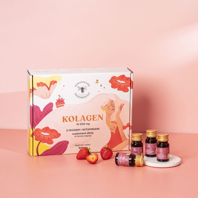Dla aktywnych, dla dbających o urodę i dla wszystkich, dla których picie kolagenu stało się codziennym zwyczajem, kolagenowe shoty z Manufaktury Rodziny Sadowskich to jeszcze prostszy sposób, aby każdego dnia wspierać organizm. Mimo, że wraz z wiekiem ilość naturalnie produkowanego w ciele człowieka kolagenu spada, regularna suplementacja tego składnika pomaga utrzymać jego optymalne zasoby w ciele. Dzięki temu skóra, włosy, paznokcie, stawy, kości i zęby pozostają w dobrej kondycji. Doskonale sprawdza się kolagen rybi, który jest pozyskiwany ze skóry i łusek ryb morskich, ponieważ ma ona strukturę podobną do kolagenu ludzkiego i wyróżnia się wysoką przyswajalnością.