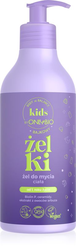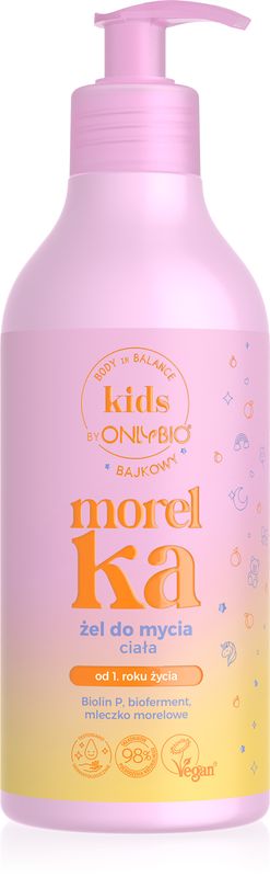 Żel do mycia ciała dla dzieci Marshmallow Body in Balance Kids z prebiotykiem Biolin P, ekstraktem z wąkroty azjatyckiej i mlekiem ze słodkich migdałów. Koi, nawilża i otula słodkim zapachem pianek. Żel do mycia ciała dla dzieci Bajkowy Żelki Body in Balance Kids, który delikatnie oczyszcza i pachnie jak owocowe żelki, zamieniając kąpiel w zabawę. Formuła z Biolin P, ceramidami i ekstraktem z owoców arbuza pomaga utrzymać odpowiedni poziom nawilżenia i pozostawia skórę miękką oraz pachnącą. Żel do mycia ciała dla dzieci Morelka Body in Balance Kids z mleczkiem morelowym, biofermentem i prebiotykiem Biolin P działa kojąco na wrażliwą skórę i wspiera jej regenerację i wzmacnia naturalną barierę ochronną, pozostawiając zapach morelowo-jogurtowego deseru.