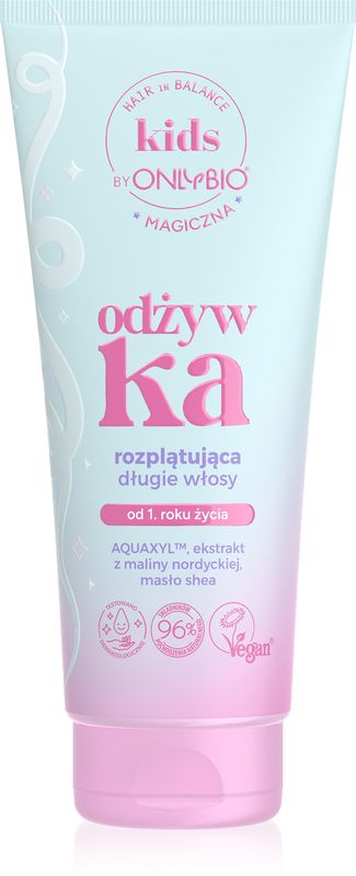 Magiczna odżywka rozplątująca Hair in Balance KIDS by OnlyBio to sprzymierzeniec każdej mamy i każdego taty przy porannym rozczesywaniu. Powstała z myślą o najmłodszych i ich wrażliwej skórze głowy. Jej formuła wspiera proces rozplątywania niesfornych kosmyków, dzięki czemu rozczesywanie staje się znacznie łatwiejsze i przyjemniejsze. Włosy zyskują widoczne wzmocnienie, są odżywione i pełne naturalnego blasku, a przy tym pozostają lekkie i miękkie w dotyku. W składzie znalazł się m.in. Aquaxyl™ pomagający utrzymać odpowiedni poziom nawilżenia, ekstrakt z maliny nordyckiej o właściwościach odżywczych oraz masło shea wygładzające i chroniące przed przesuszeniem. Całość dopełnia owocowy zapach malin i wiśni, który sprawia, że codzienna pielęgnacja zamienia się w przyjemny rytuał. Odżywka zawiera 96% składników pochodzenia naturalnego.